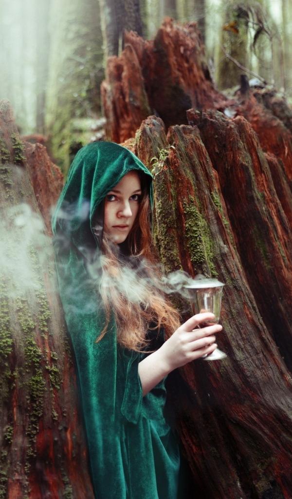 Wallpaper Enchantress steaming cup in the forest