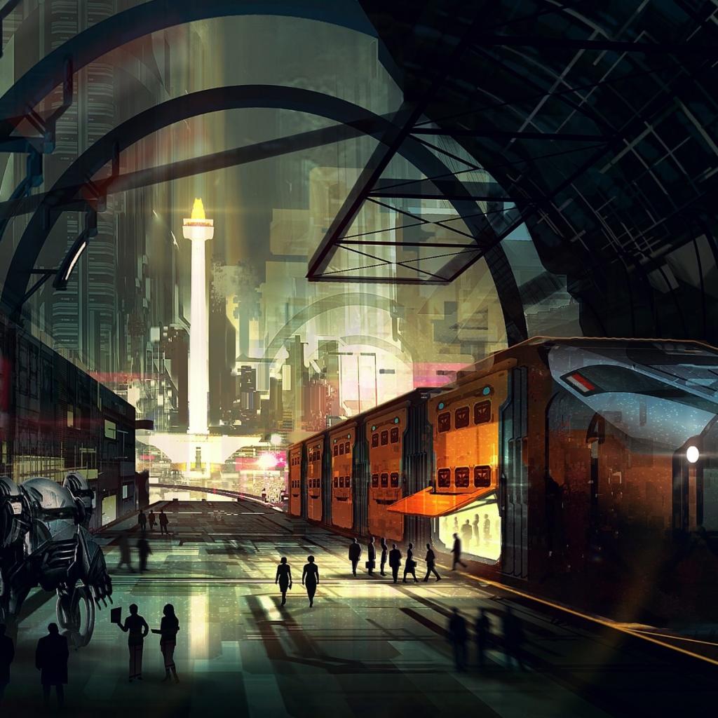 Wallpaper Robot on the station platform in the future
