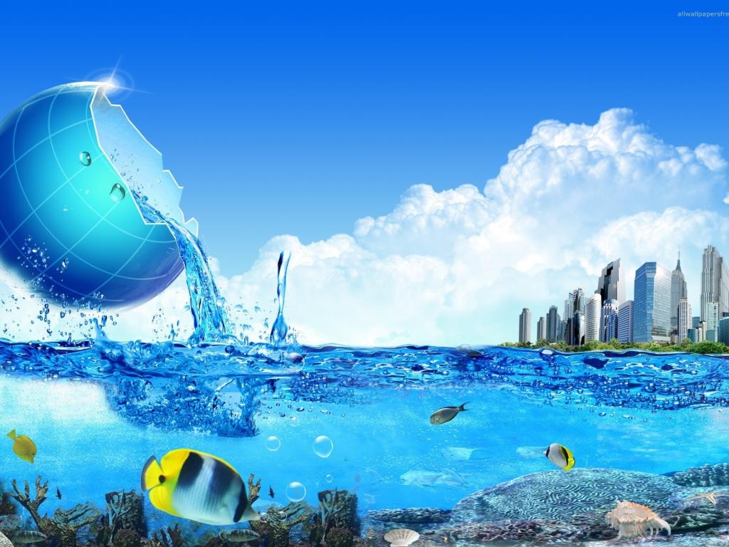 Wallpaper The sea is replenished from the cup
