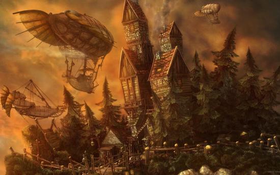 Wallpaper Airships the castle in the world of fantasy