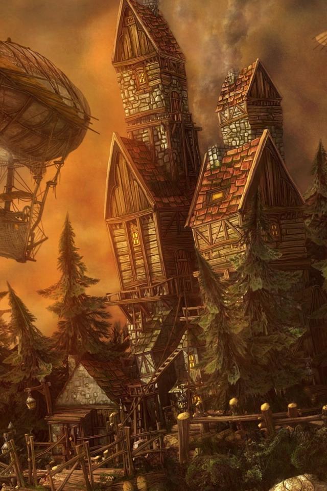 Wallpaper Airships the castle in the world of fantasy