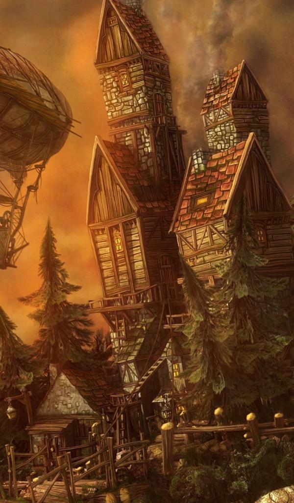 Wallpaper Airships the castle in the world of fantasy