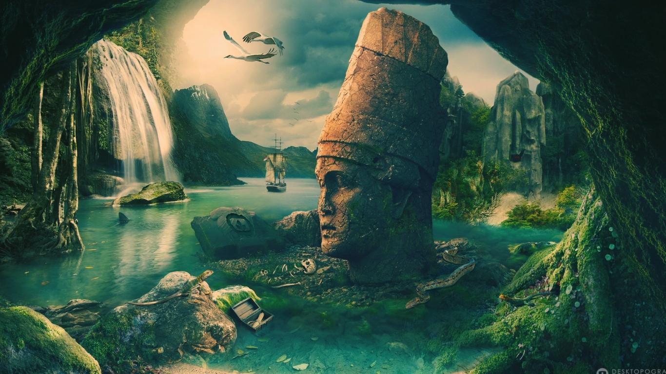 Wallpaper The head of a large statue in the ruins of Atlantis