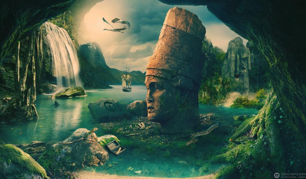 Wallpaper The head of a large statue in the ruins of Atlantis