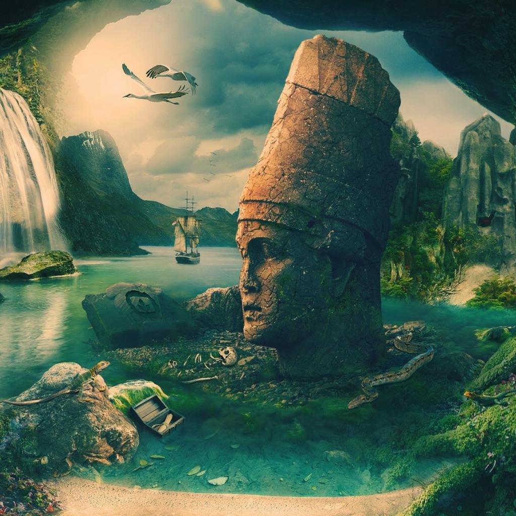 Wallpaper The head of a large statue in the ruins of Atlantis