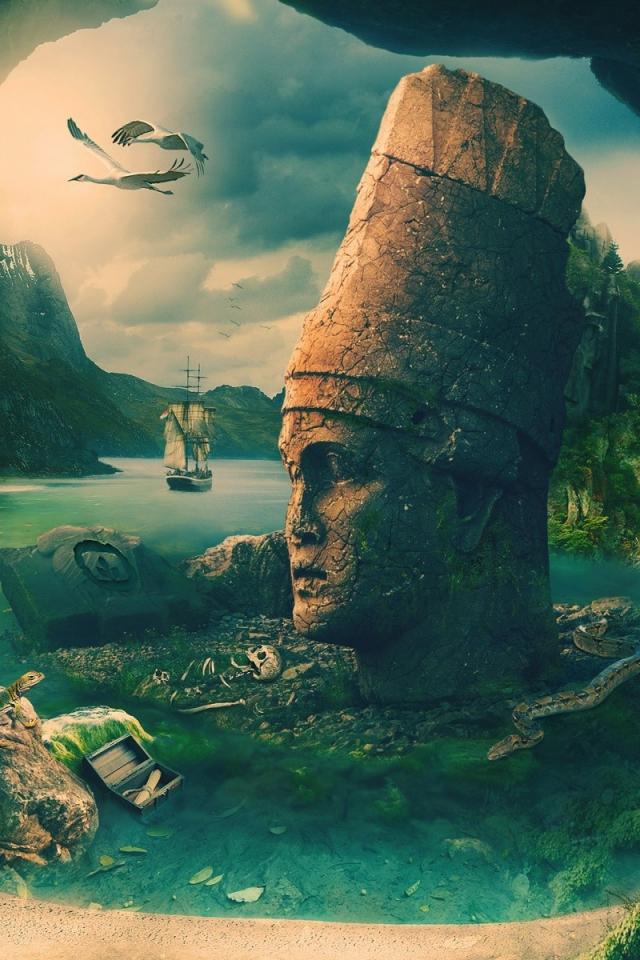 Wallpaper The head of a large statue in the ruins of Atlantis