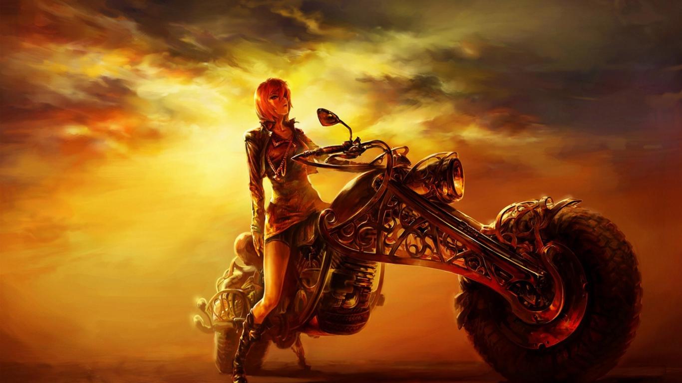 Wallpaper The girl on a motorcycle Steampunk