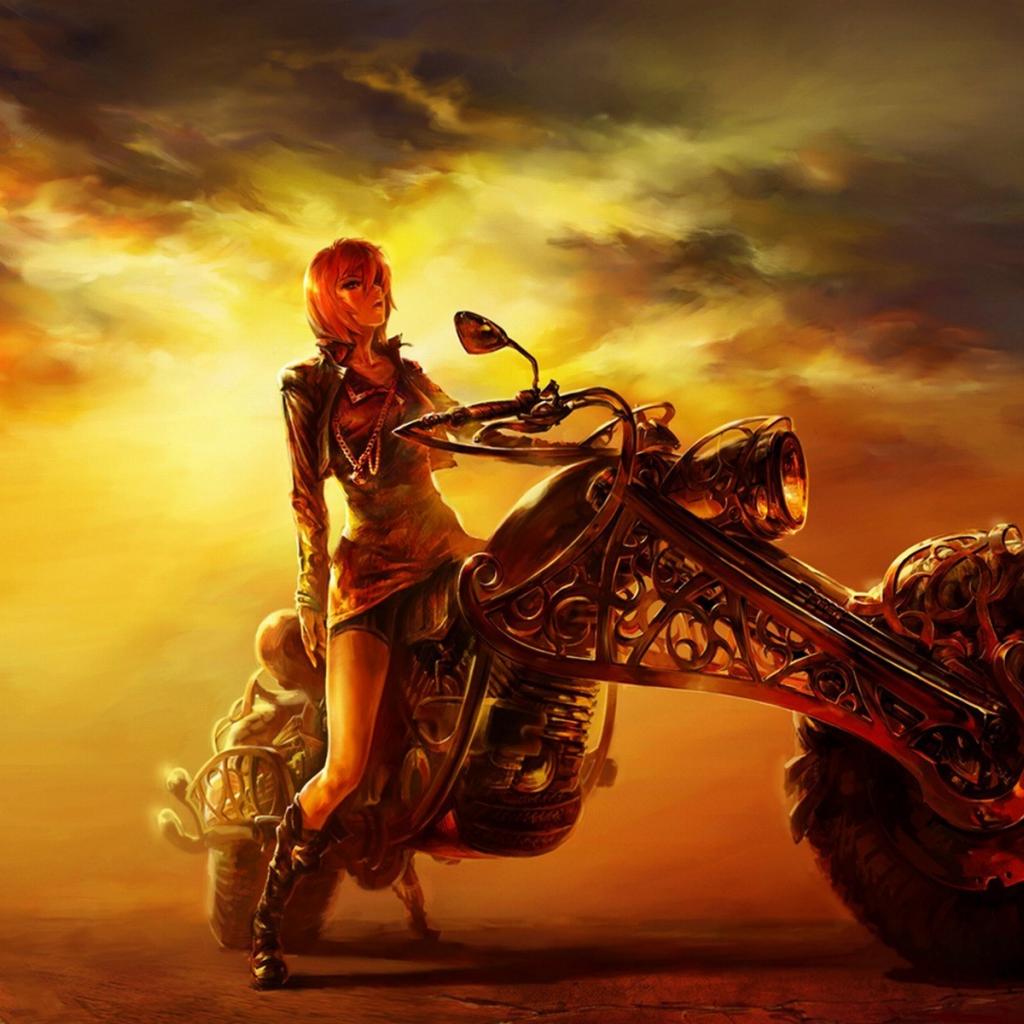 Wallpaper The girl on a motorcycle Steampunk