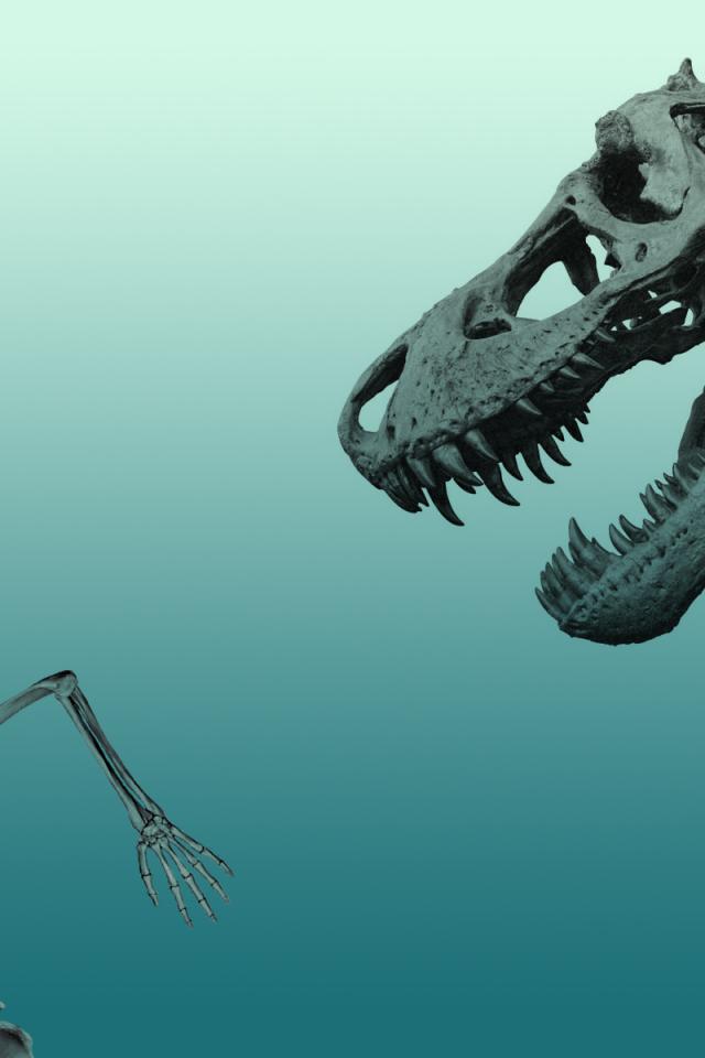 Wallpaper The skeleton of a dinosaur skeleton chasing man