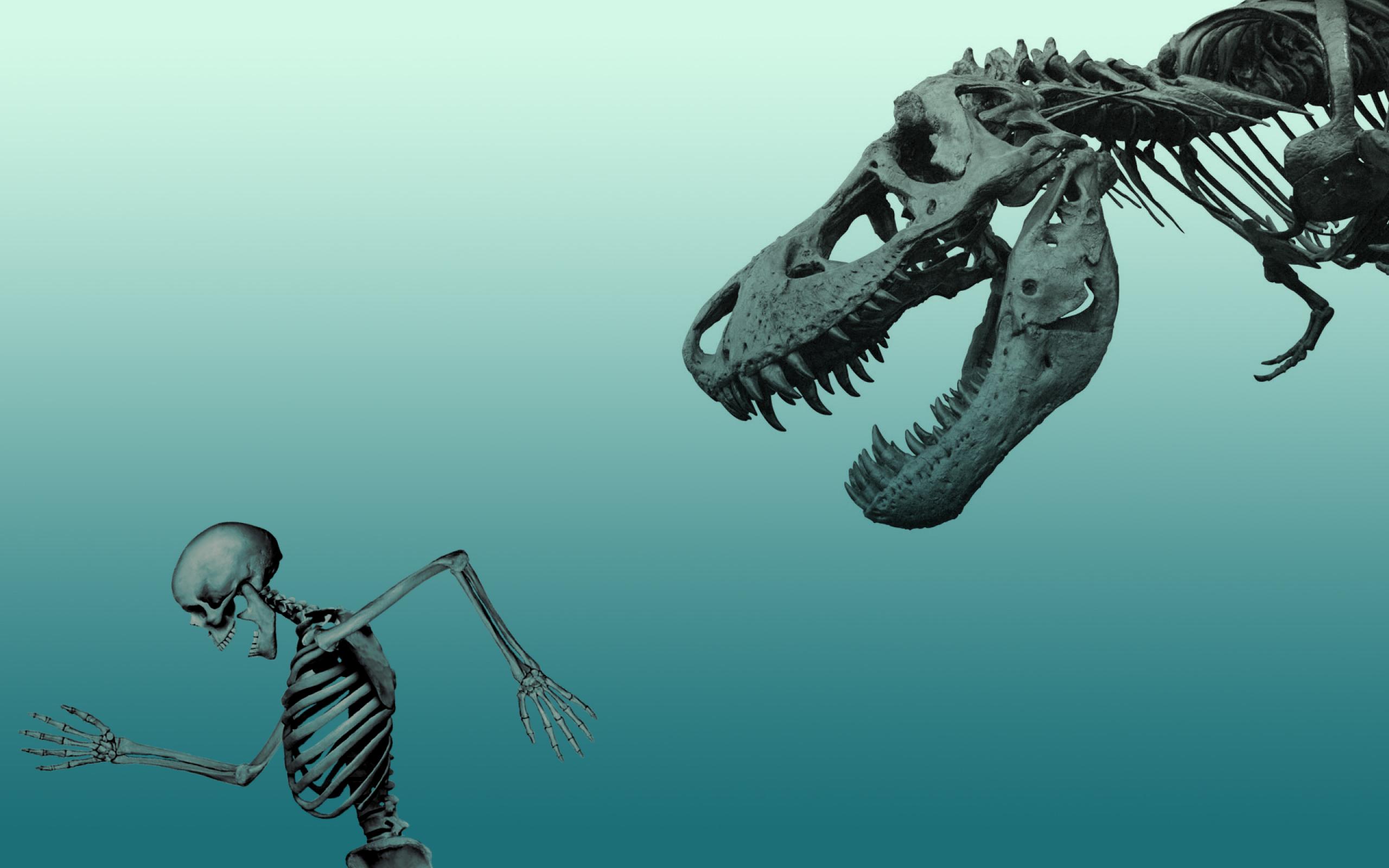 Wallpaper The skeleton of a dinosaur skeleton chasing man