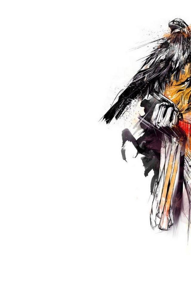 Wallpaper The skeleton of a girl with raven on his shoulder