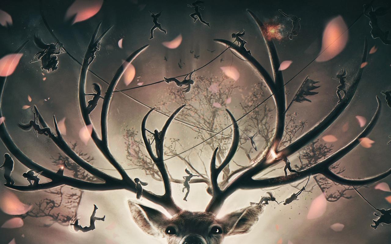 Wallpaper Fairies playing on the horns of a deer