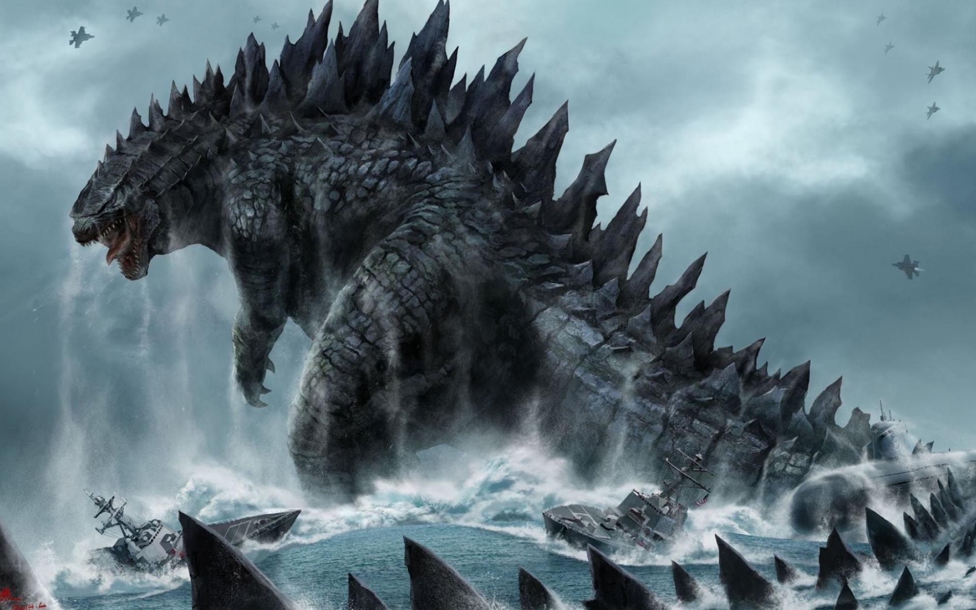 Wallpaper Godzilla storms at sea