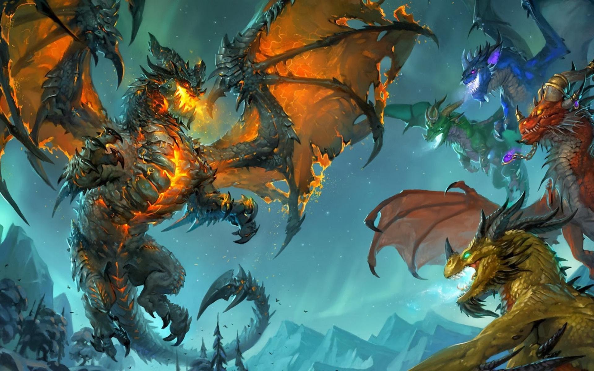 Wallpaper Battle fire-breathing dragons
