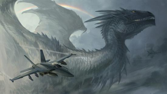Wallpaper The plane on a background of the Dragon