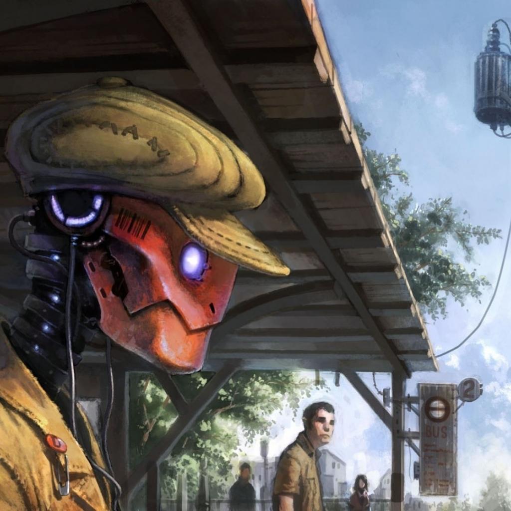 Wallpaper Robot in the cap on the platform waiting for the train