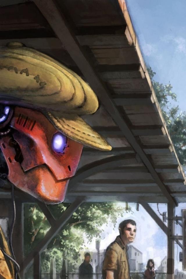 Wallpaper Robot in the cap on the platform waiting for the train