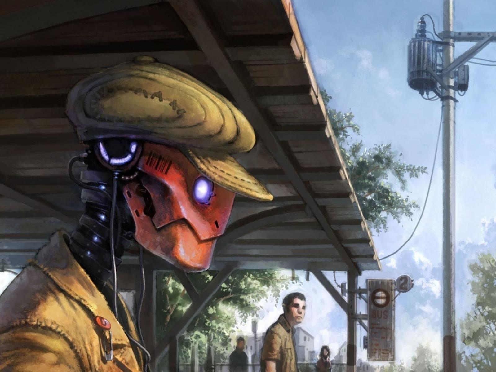 Wallpaper Robot in the cap on the platform waiting for the train
