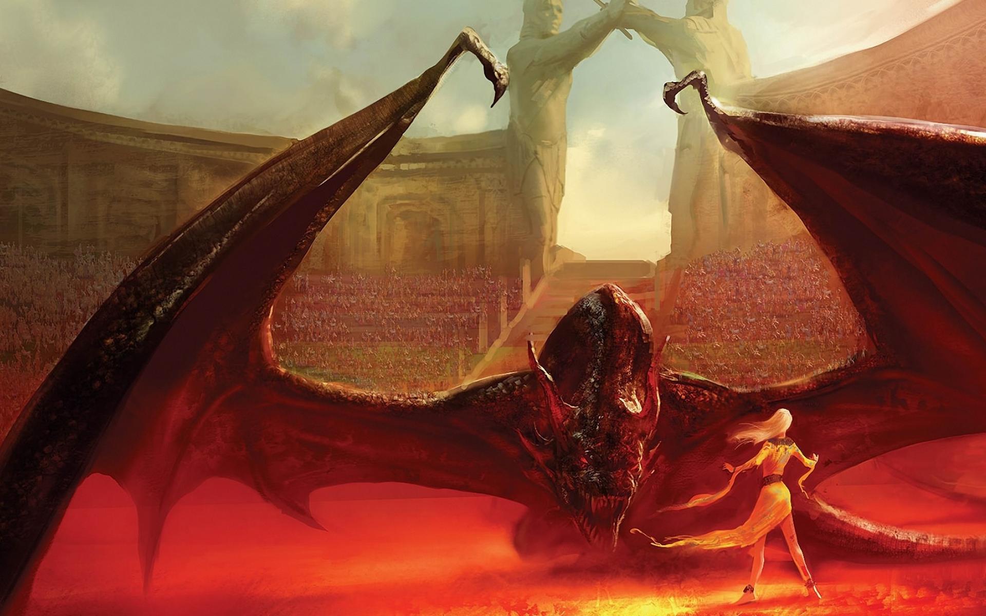 Wallpaper The girl with the dragon fights in the arena