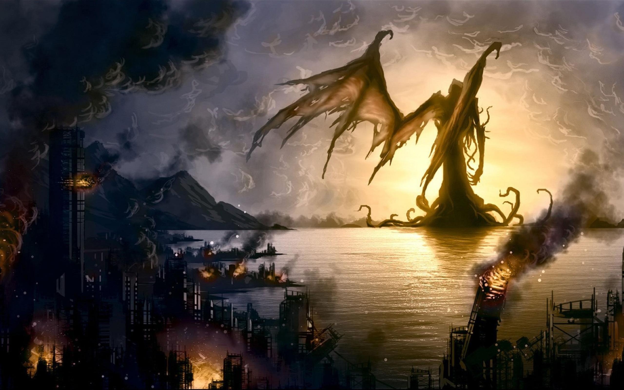 Wallpaper The angel of death has destroyed the coastal city