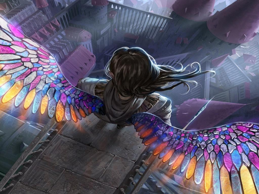 Wallpaper Angel with iridescent wings on the edge