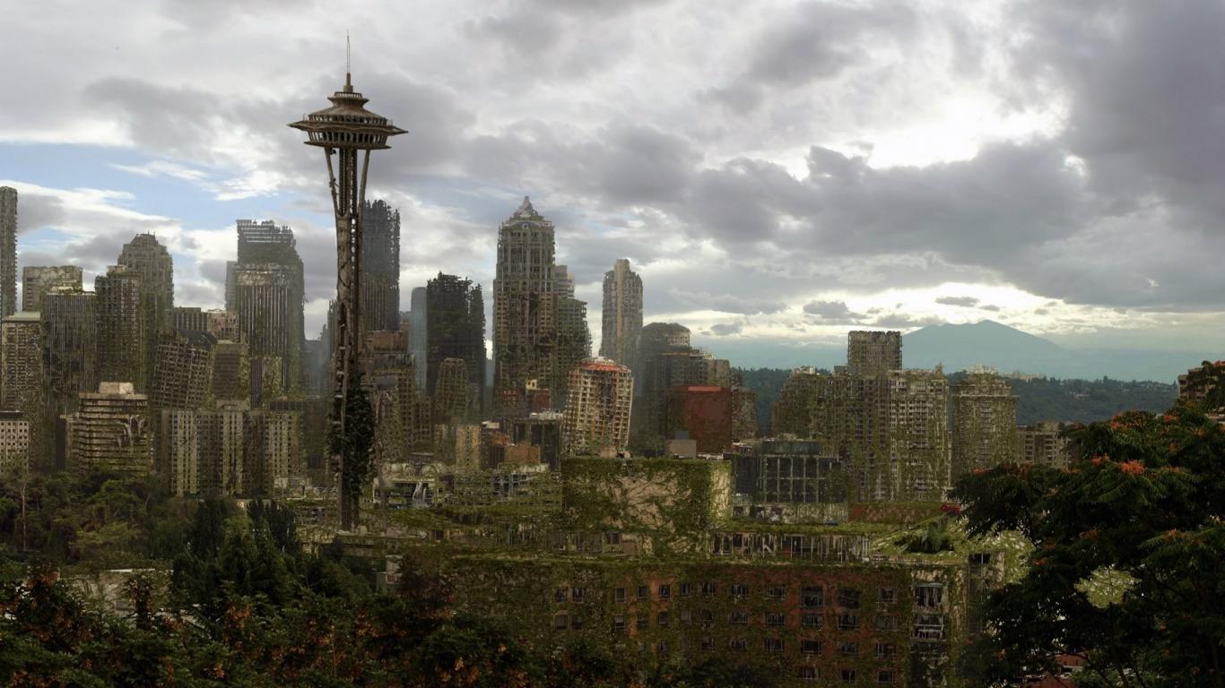 Wallpaper Overgrown with greenery ruins Seattle