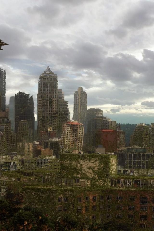 Wallpaper Overgrown with greenery ruins Seattle