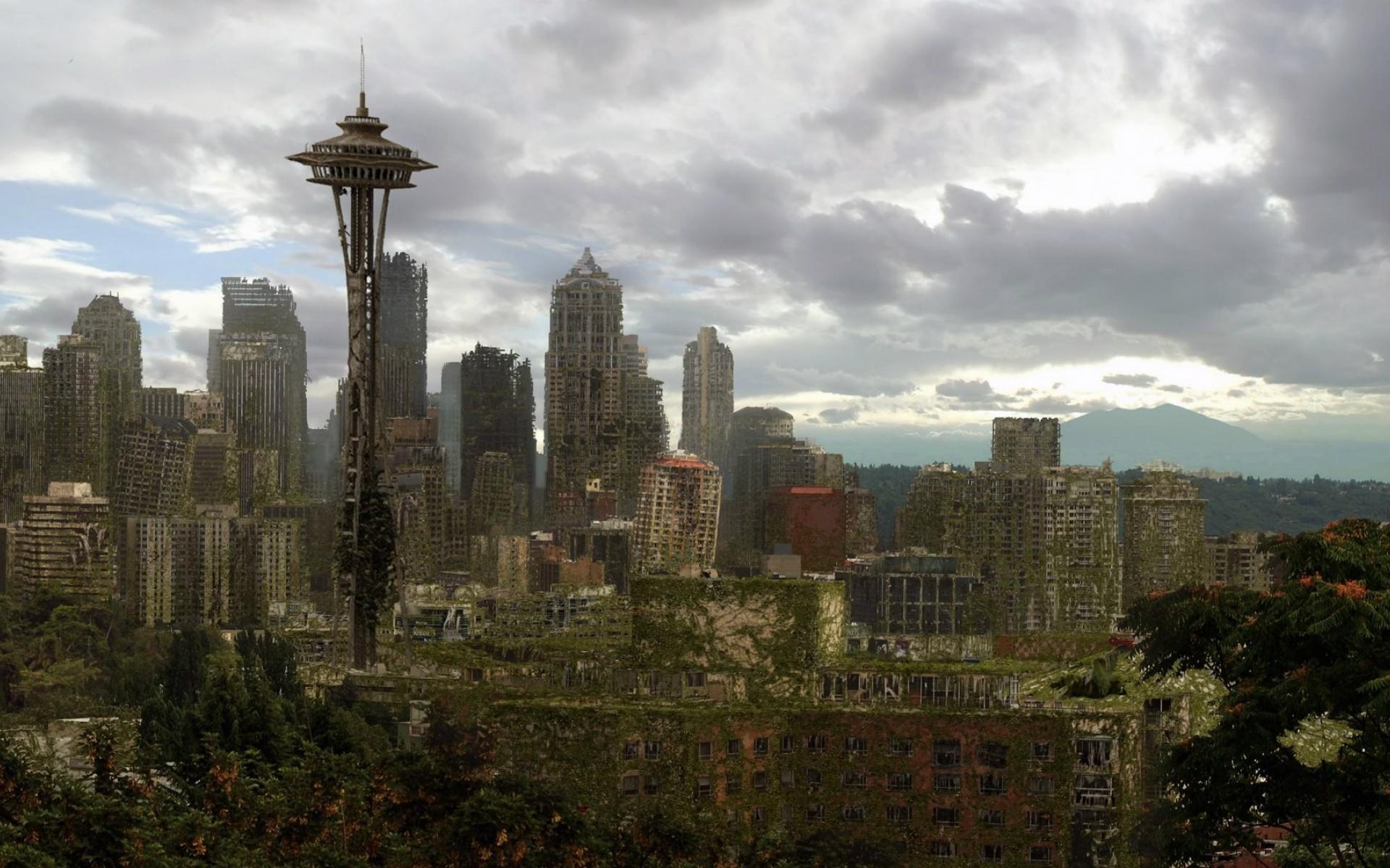 Wallpaper Overgrown with greenery ruins Seattle