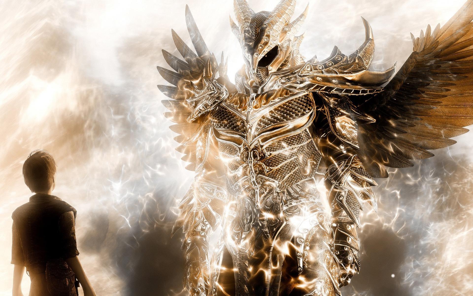 Wallpaper A man and a demon in golden armor