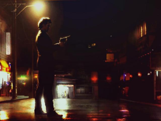 Wallpaper A man with a gun on the night street