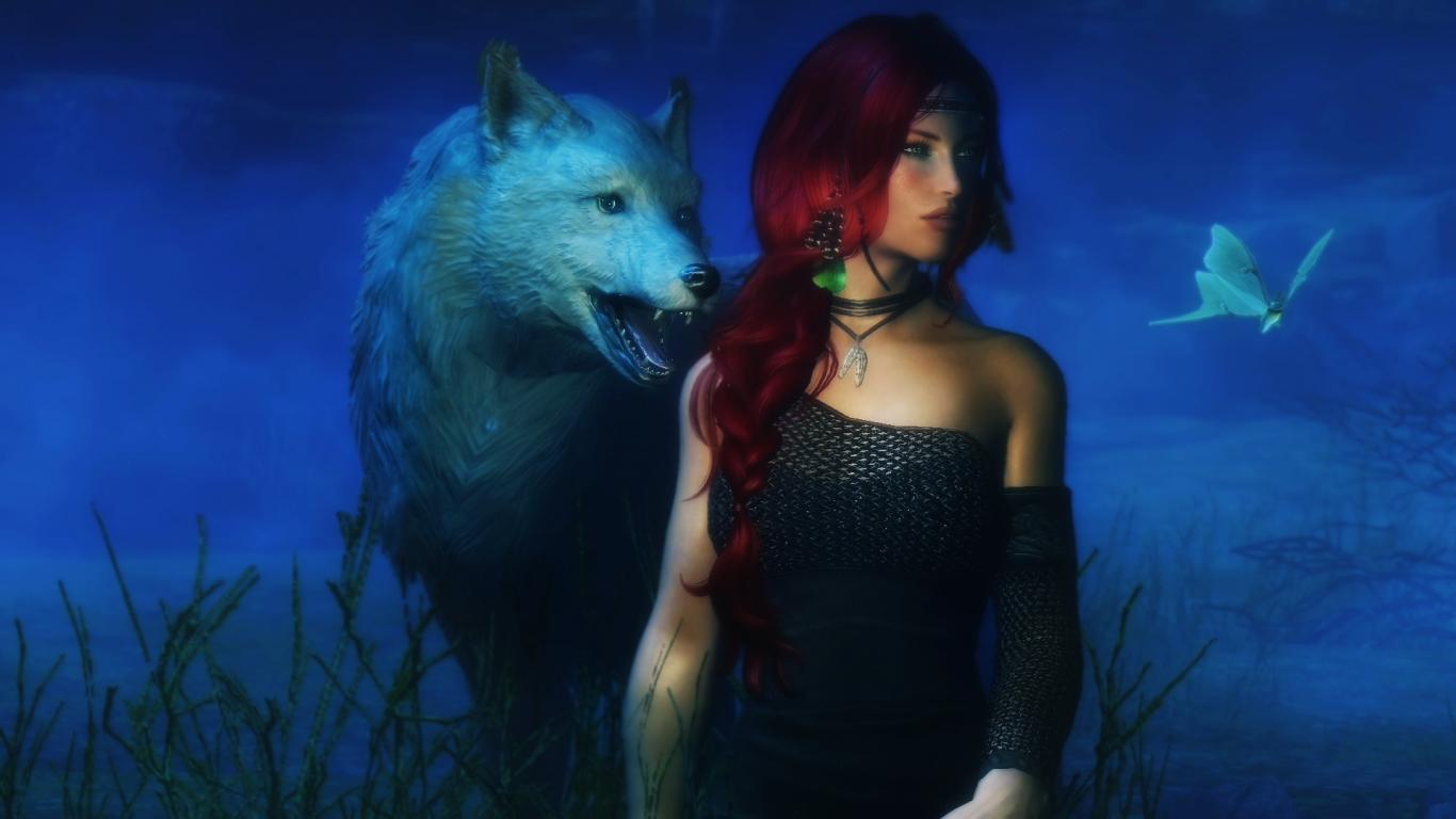 Wallpaper A girl with her hand wolf