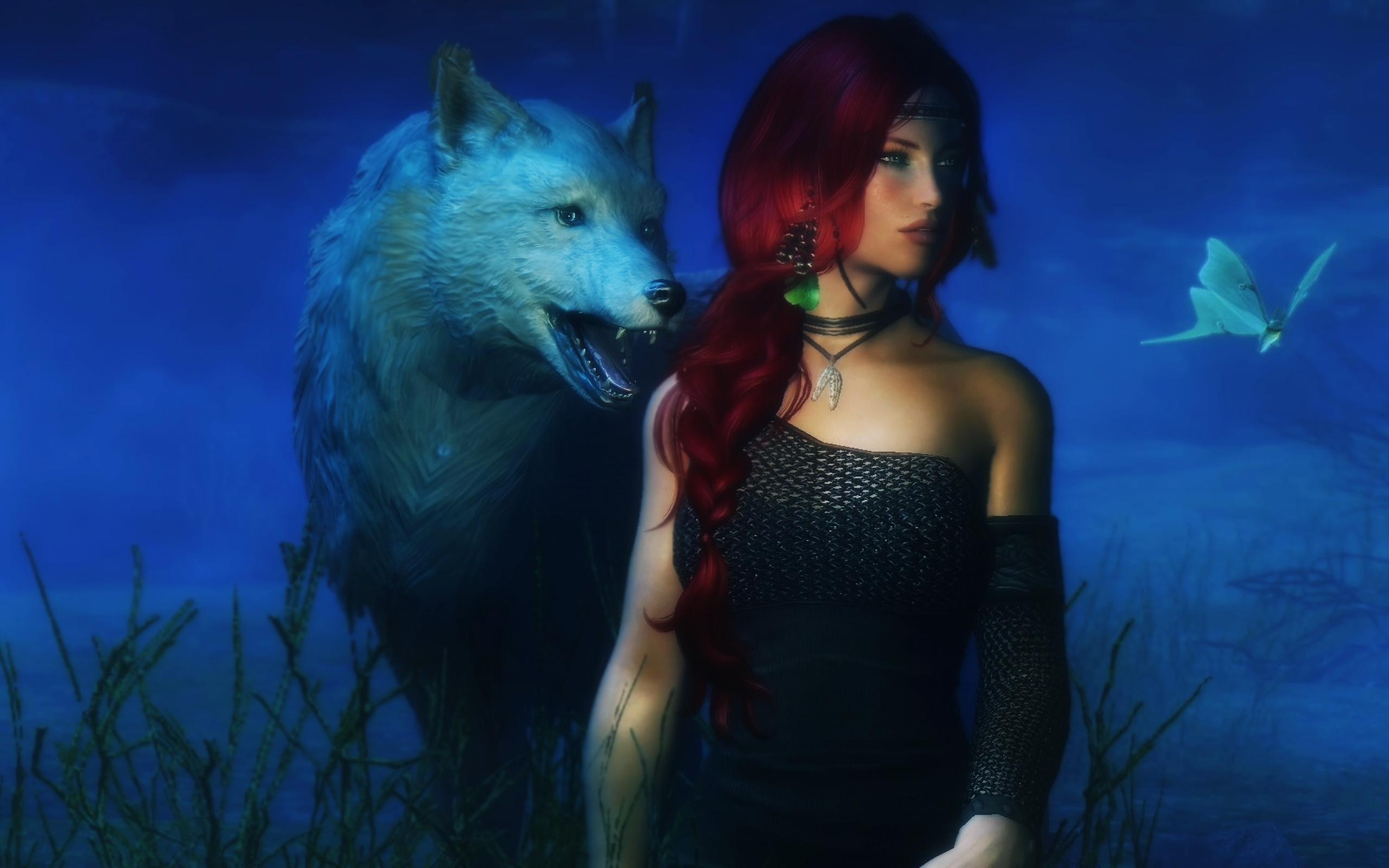 Wallpaper A girl with her hand wolf