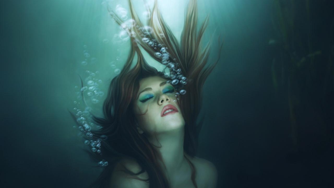 Wallpaper Mermaid Girl immersed in water