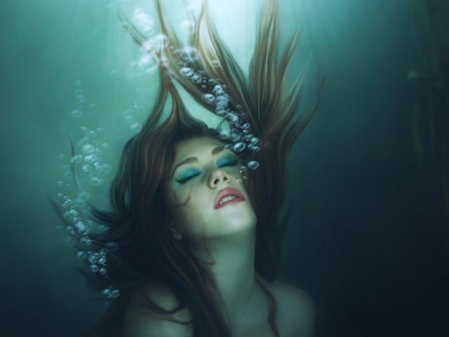 Wallpaper Mermaid Girl immersed in water