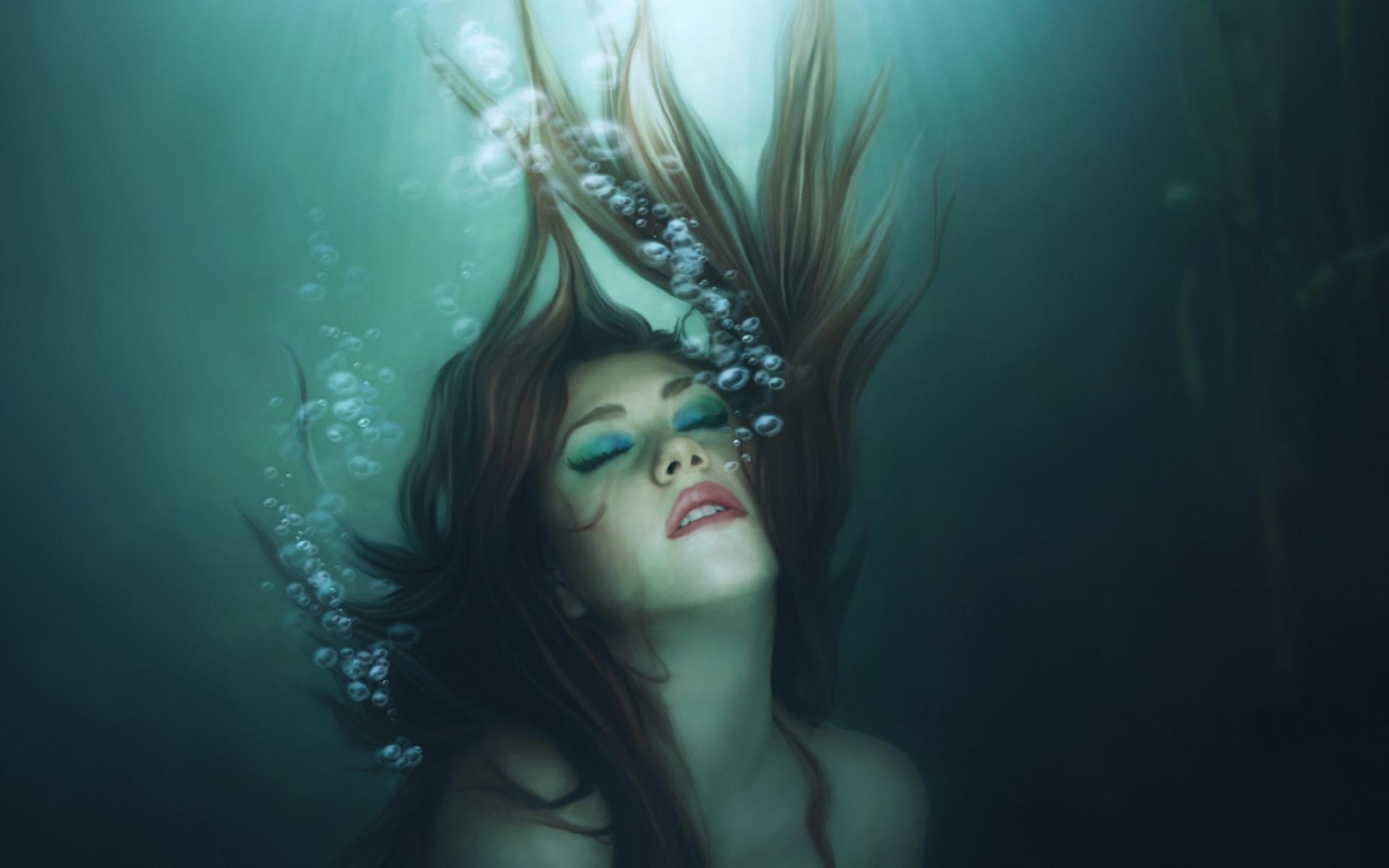 Wallpaper Mermaid Girl immersed in water
