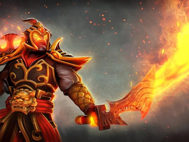 Wallpaper Warrior with fiery swords, fantasy