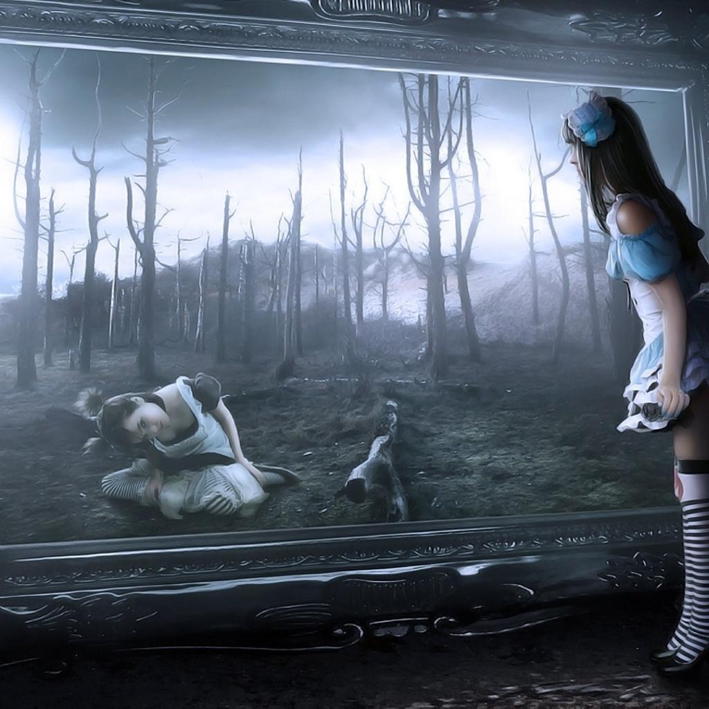 Wallpaper Alice looks in the mirror