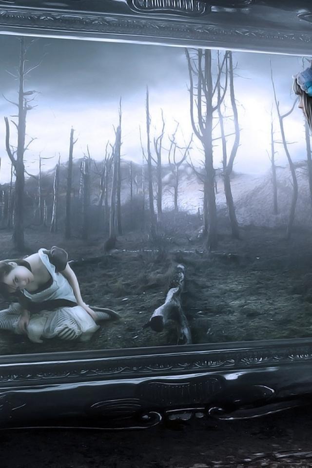 Wallpaper Alice looks in the mirror