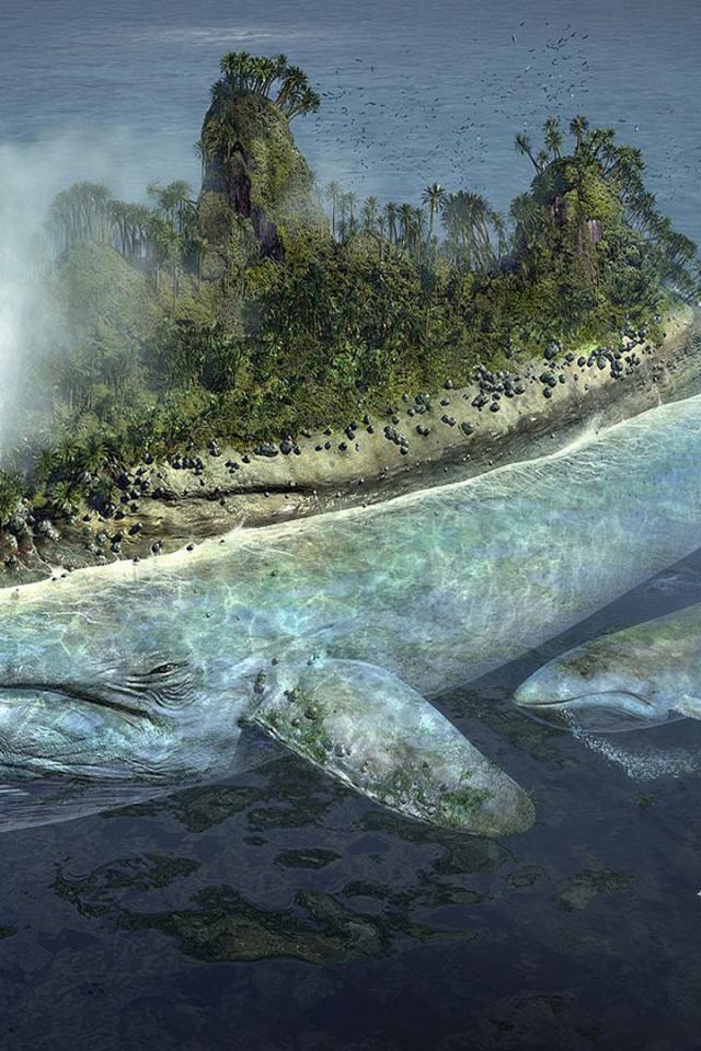 Wallpaper The island on the back of a large ocean fish