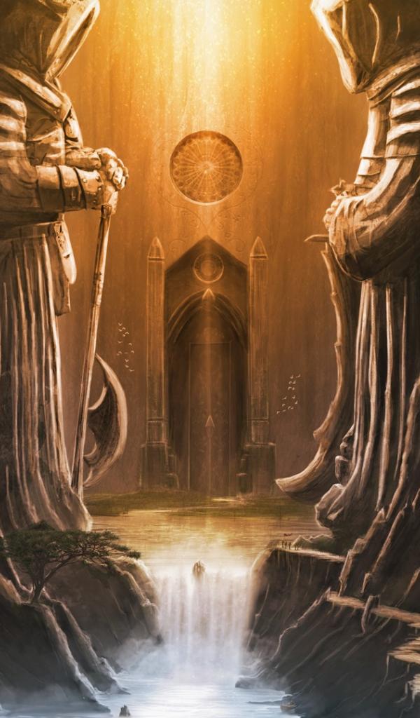 Wallpaper Stone guards at the entrance to the temple, fantasy