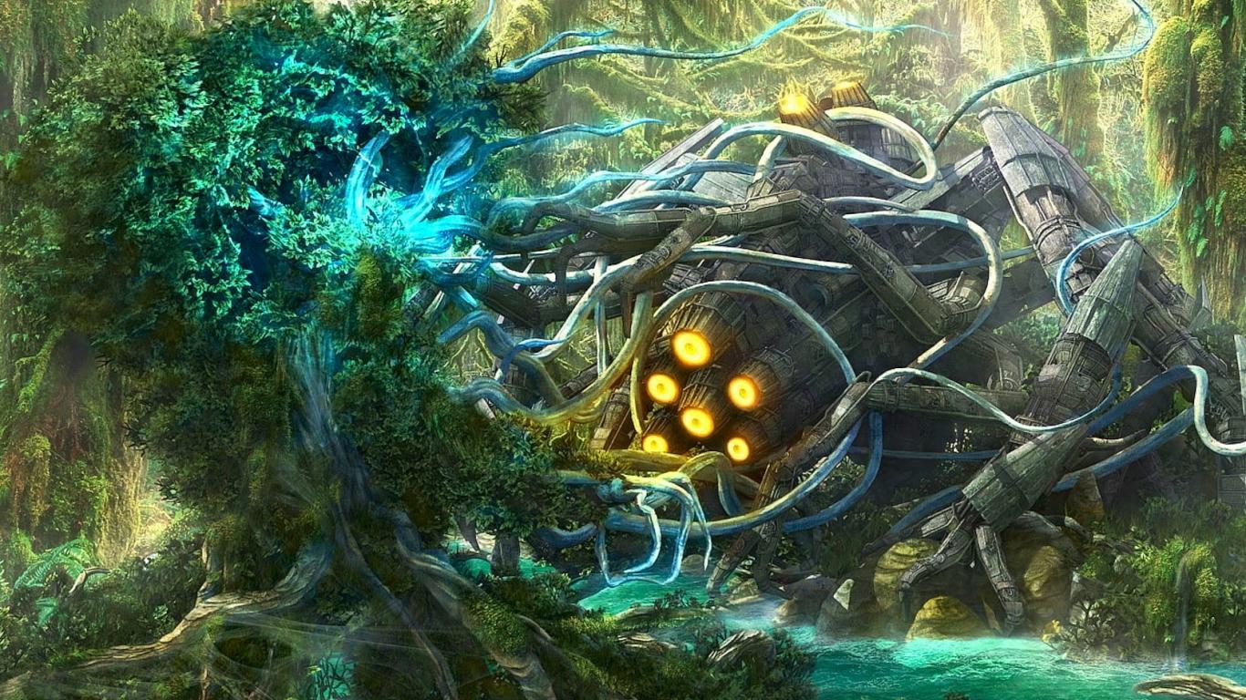 Wallpaper A spaceship in the woods