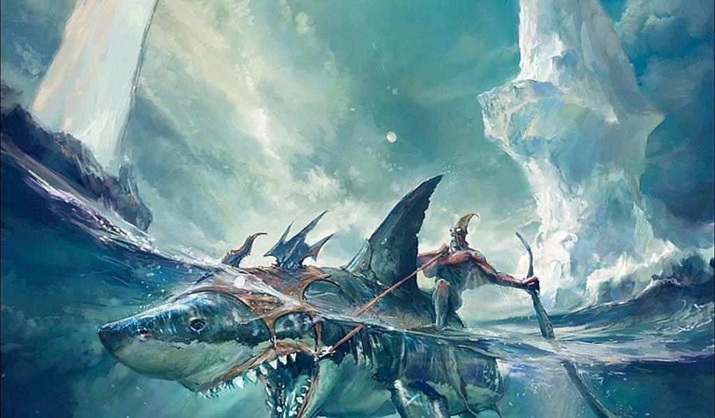 » Wallpaper Monster riding on a shark