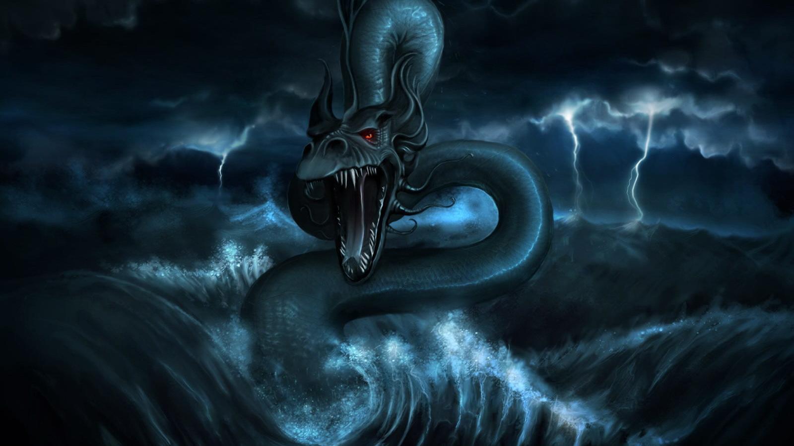 Wallpaper The ship and sea snakes