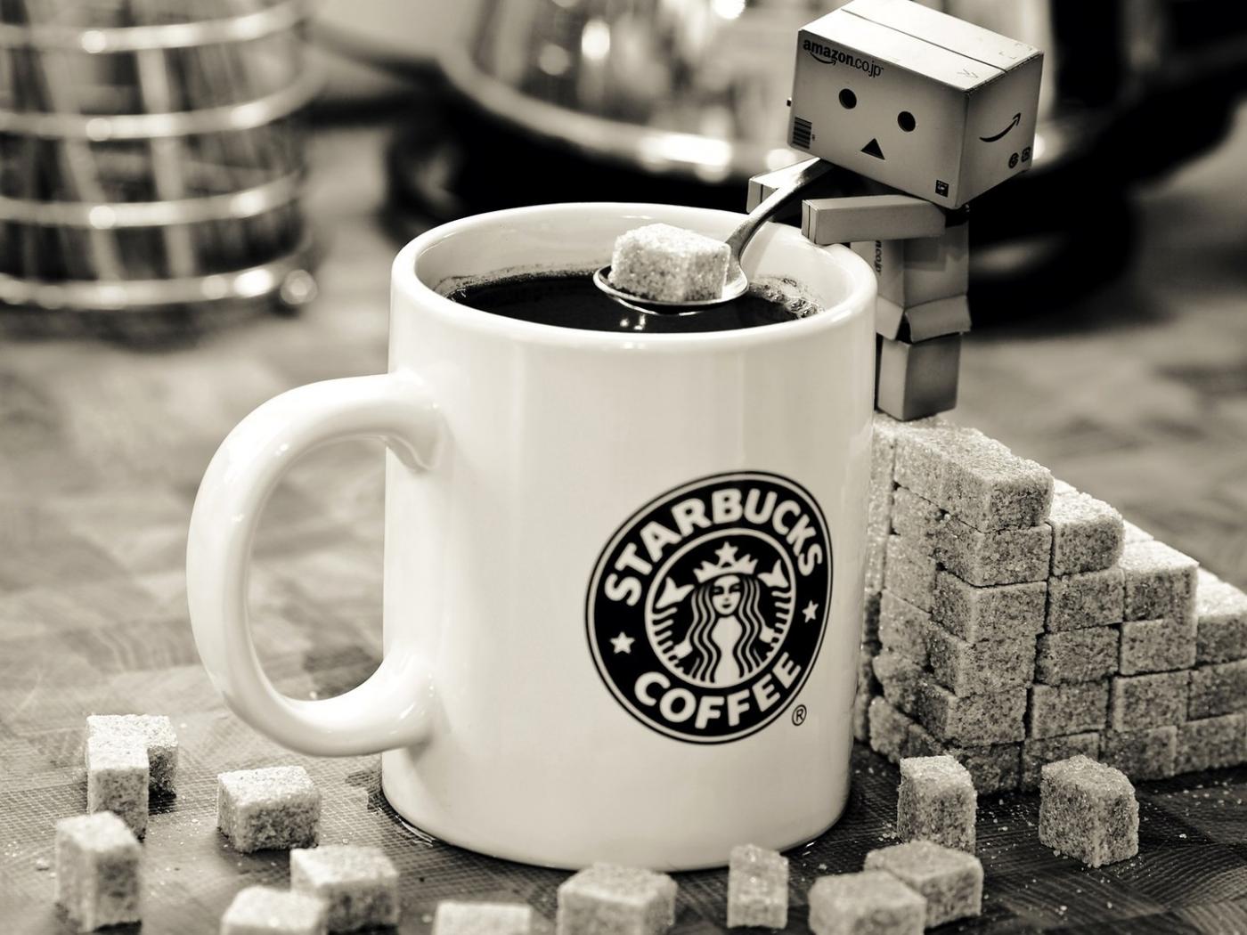 Wallpaper Cardboard man makes coffee