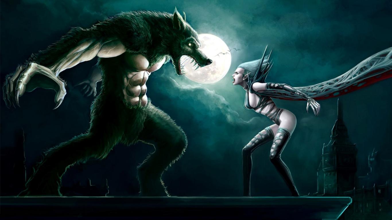 Wallpaper Werewolf against vampire