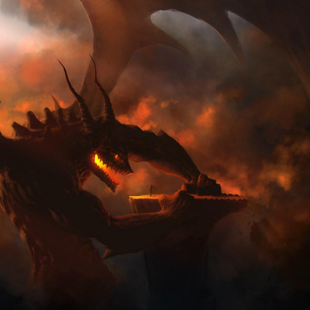 Wallpaper Fire Dragon talking with a man