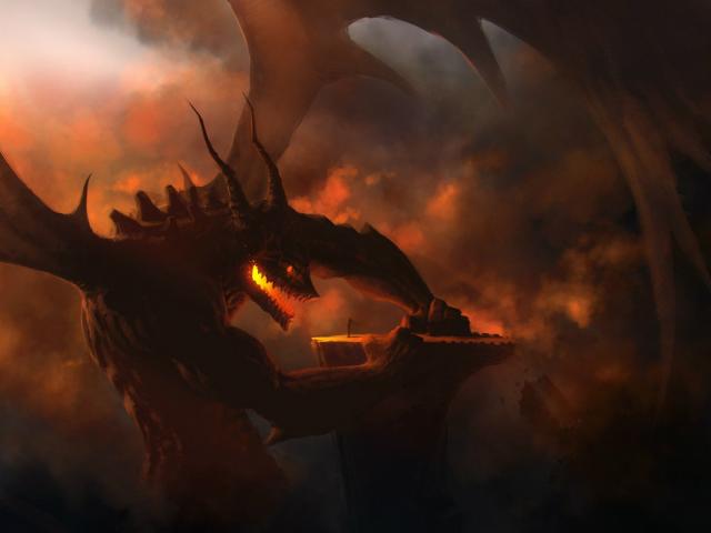 Wallpaper Fire Dragon talking with a man