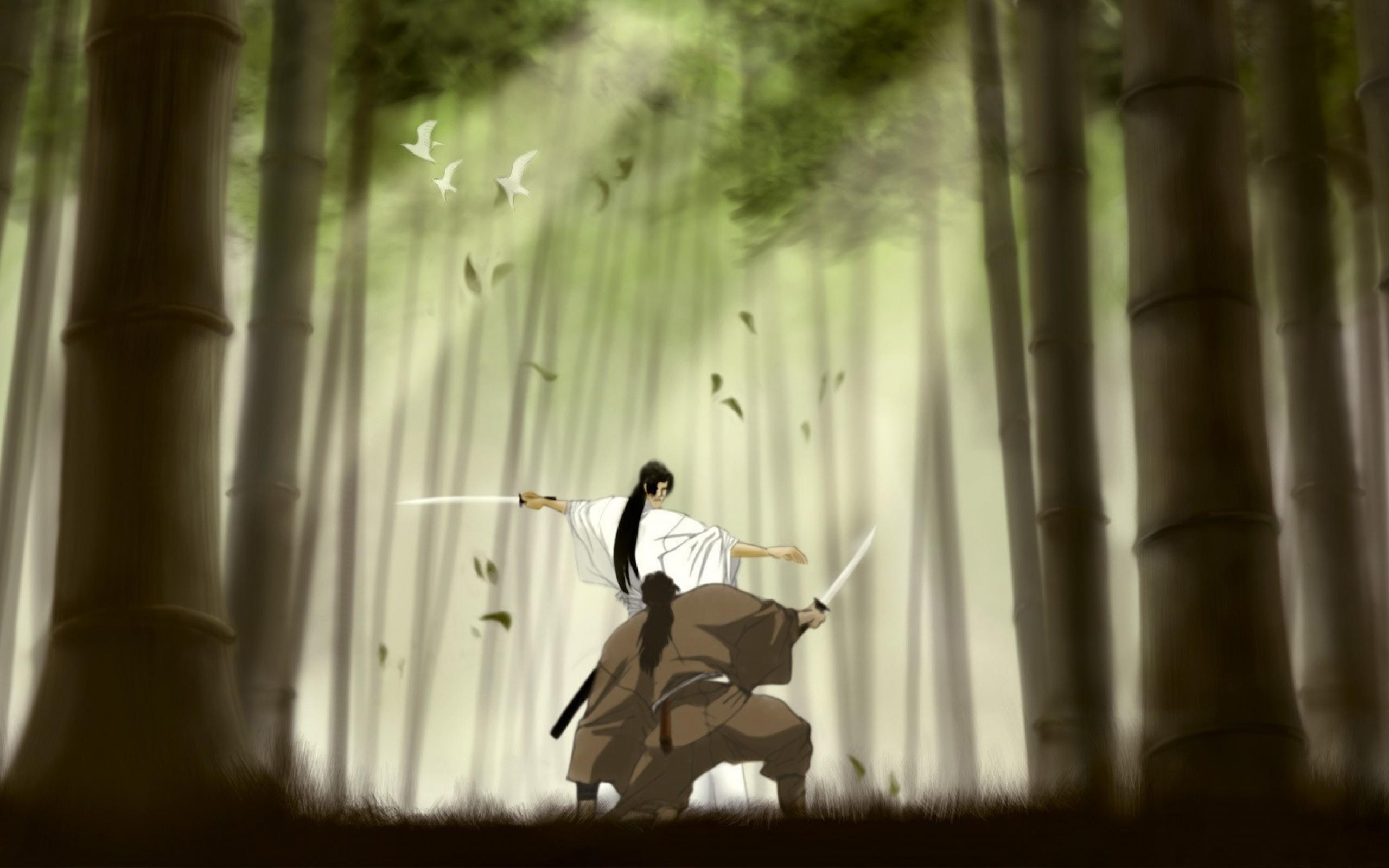 Wallpaper Japanese samurai in the bamboo forest