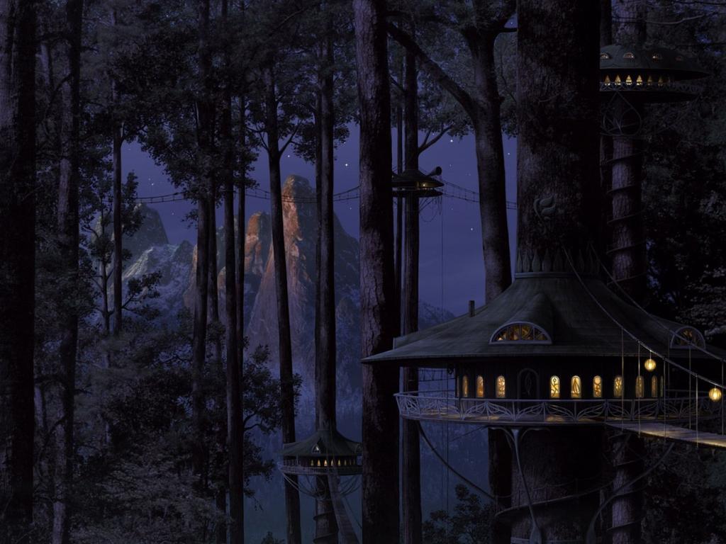 Wallpaper Elf house in the trees