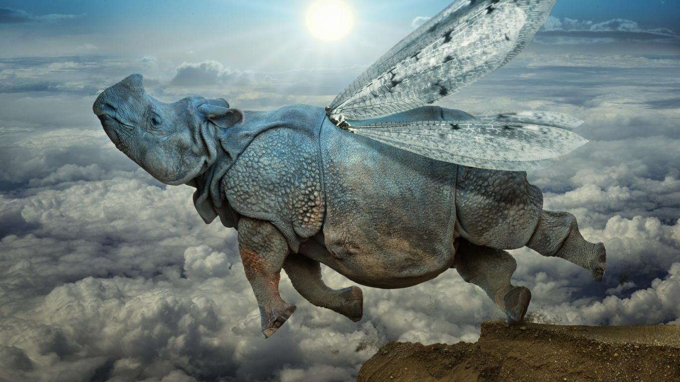 Wallpaper Rhino with dragonfly wings